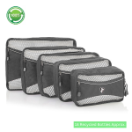 The Ecotex 5 piece Packing Cube Set™ allows you to organize your packing while saving space at the same time. You can pack your larger items in your Larger size packing cubes, your other items in your Medium size packing cubes, and your smaller accessories in your Smaller size packing cubes. Avoid unhygienic Hotel drawers and dressers by keeping your clothes in your Packing Cubes when you unpack. Use the Cubes to pack your laundry to keep it separate from your good clothes. His / Hers in separate bags, packing for kids, undergarments and accessories. The possibilities are endless for organized packing. Never open up a suitcase to have things spill out in a mess, the packing cubes allow for compact, organized packing, as well as organized unpacking. Made form durable but lightweight Ecotex material. The Packing cubes have zippered front pockets for quick and easy access which also help to better organize. Comes with carry handle, and corded double zipper pullers which makes for easy opening and closing. Can be used with Luggage, Carry-ons, Duffle Bags, Backpacks, Overnight Bags, Business Cases and much more.