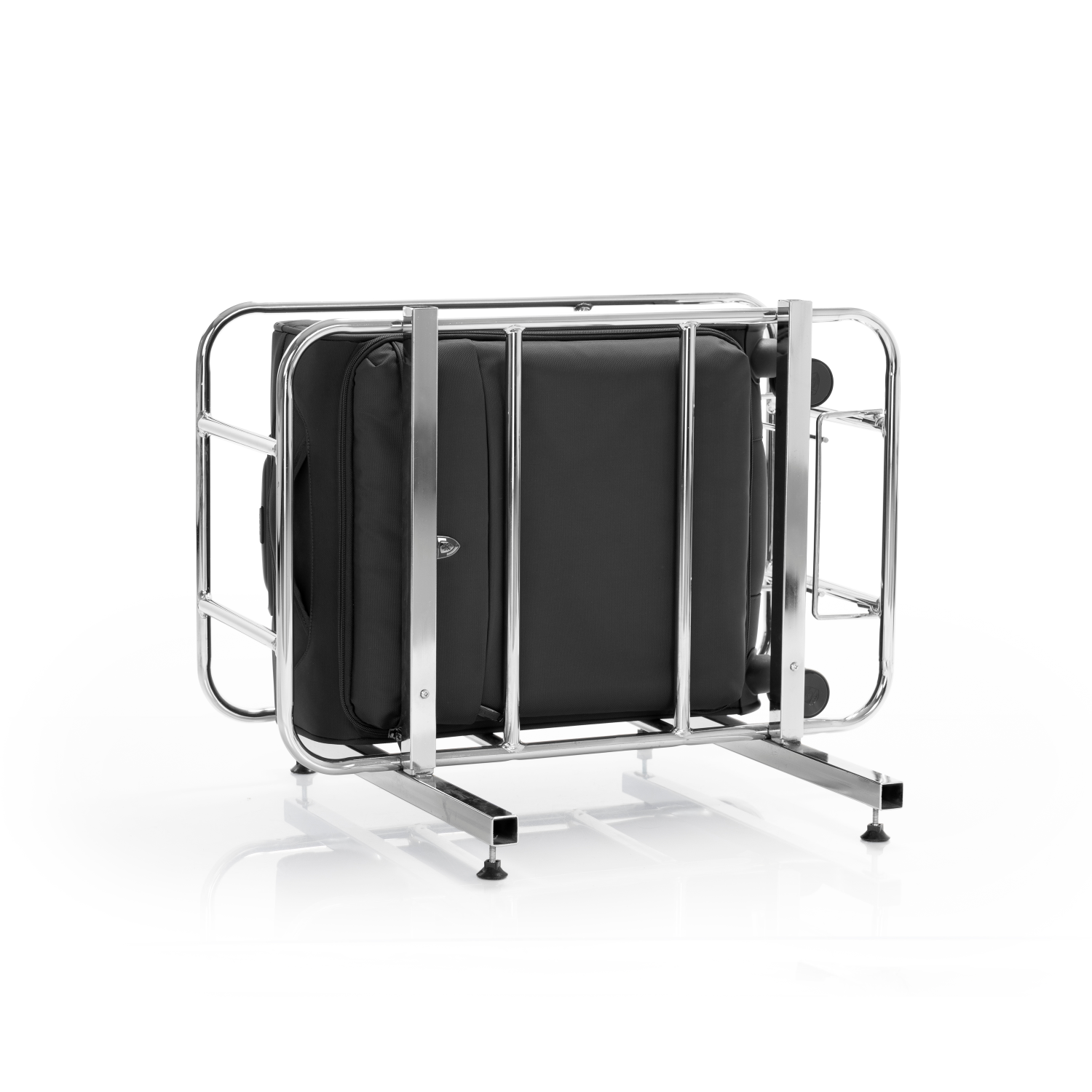 - Special lightweight colour-matching aluminum telescopic trolley handle system with ergonomically-designed, push-button multi-stage locking heights for convenience and comfort